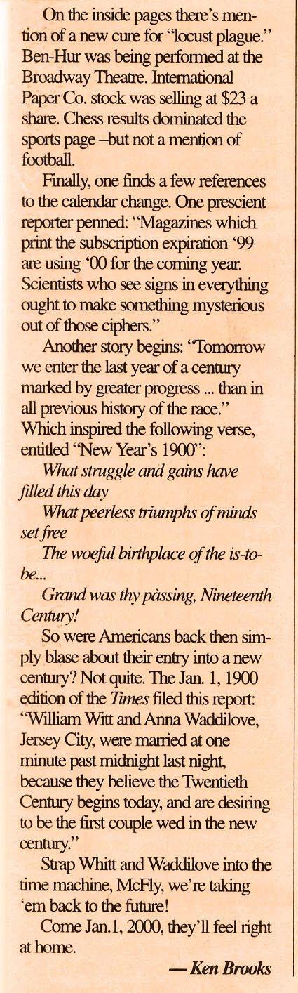 An old perspective on the new millenium, by Ken Brooks. Original publication date: Dec. 28, 1999, Panama City News Herald.